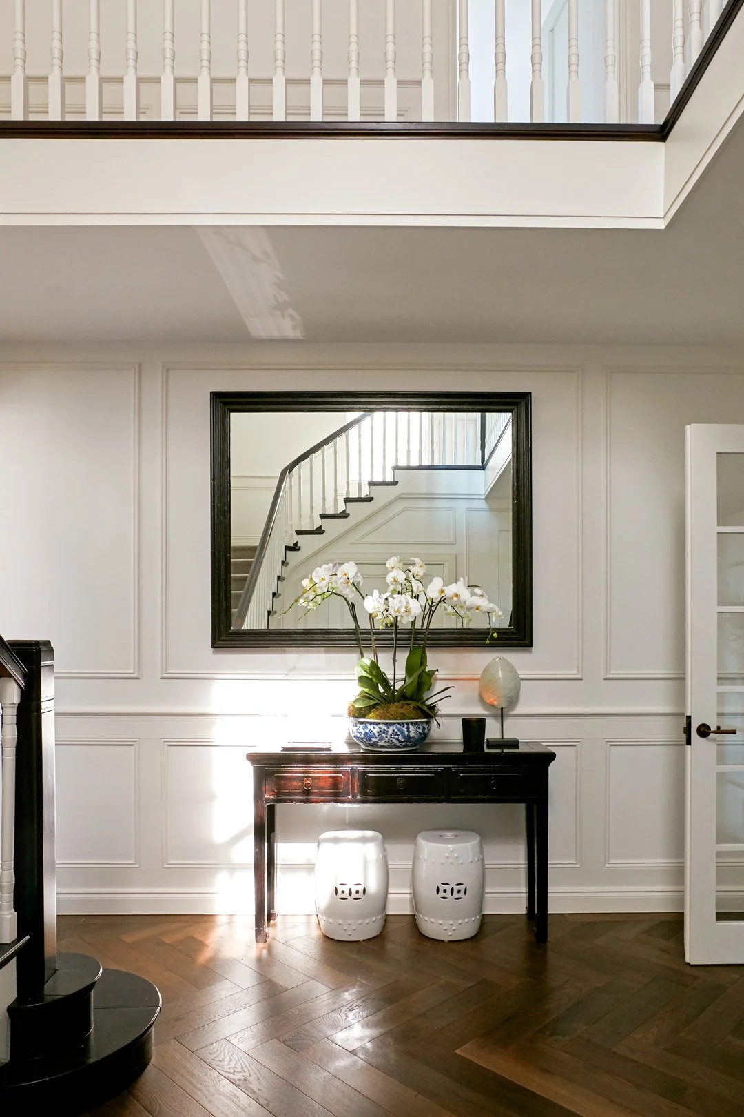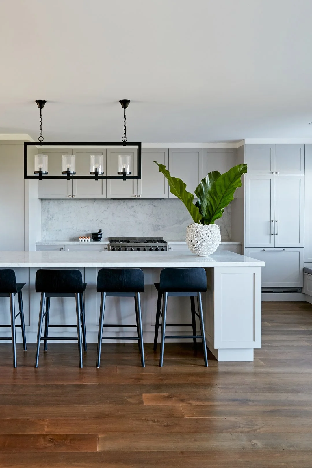 We approached the restoration and re-imagination of this Bellevue Hill property in close consultation with the client. Wainscoting was added throughout the home to create a sense of timeless appeal. Carrara marble was carefully selected for the kitchen island and an enclosed butler’s pantry services the practical needs of daily living.