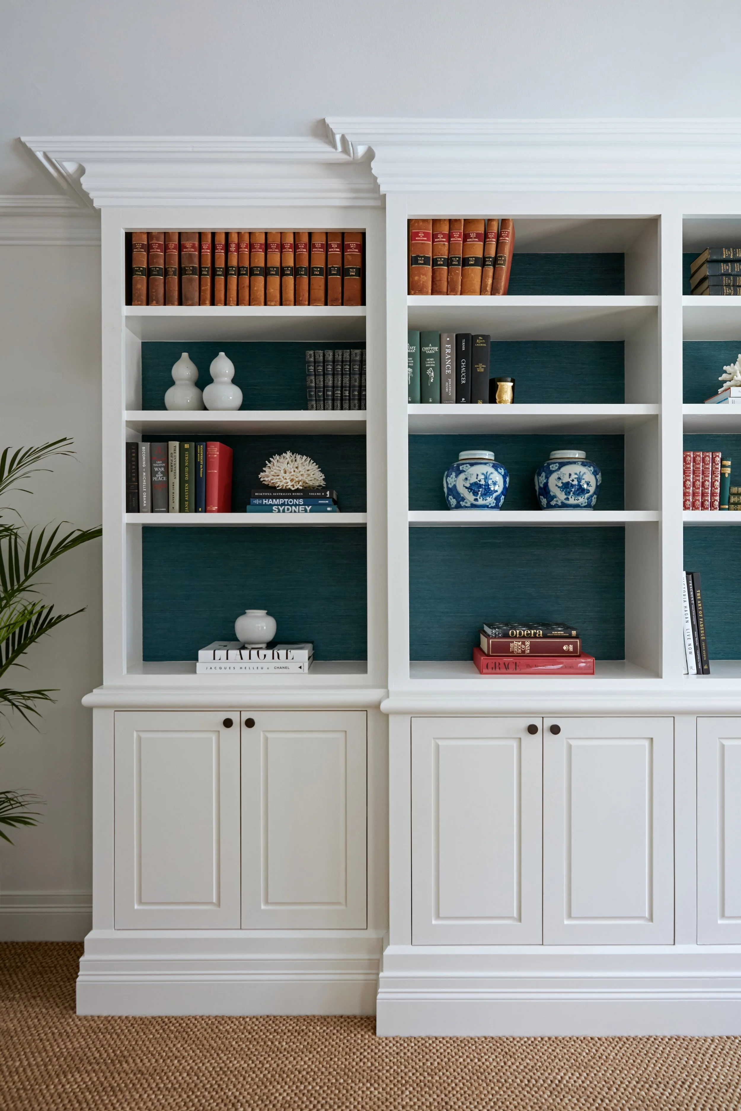 Wainscoting was added throughout the first level to elevate and create harmonious transitions within the open plan spaces. Restoration and refurbishment of exisiting joinery compliments the new custom finishes.