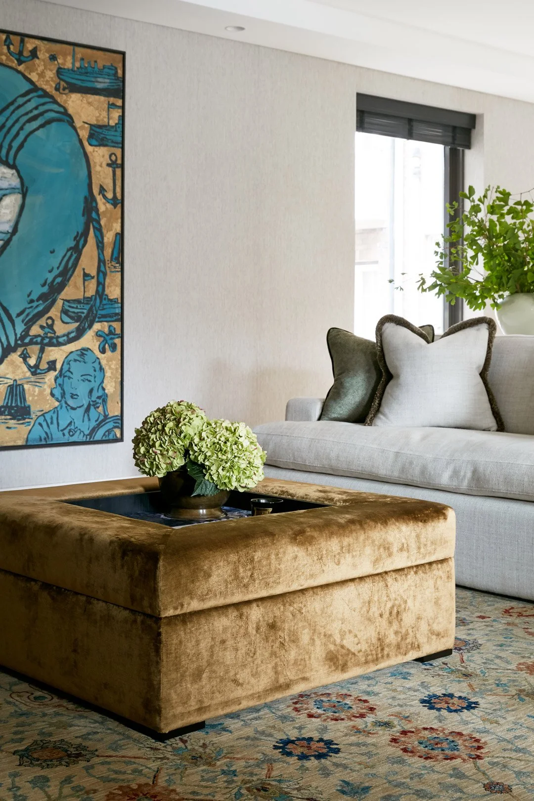 This brief was to create soft furnishings and elevate the interiors for the Pied-à-terre that were both equally chic and comfortable while paying close attention to the client’s existing art.